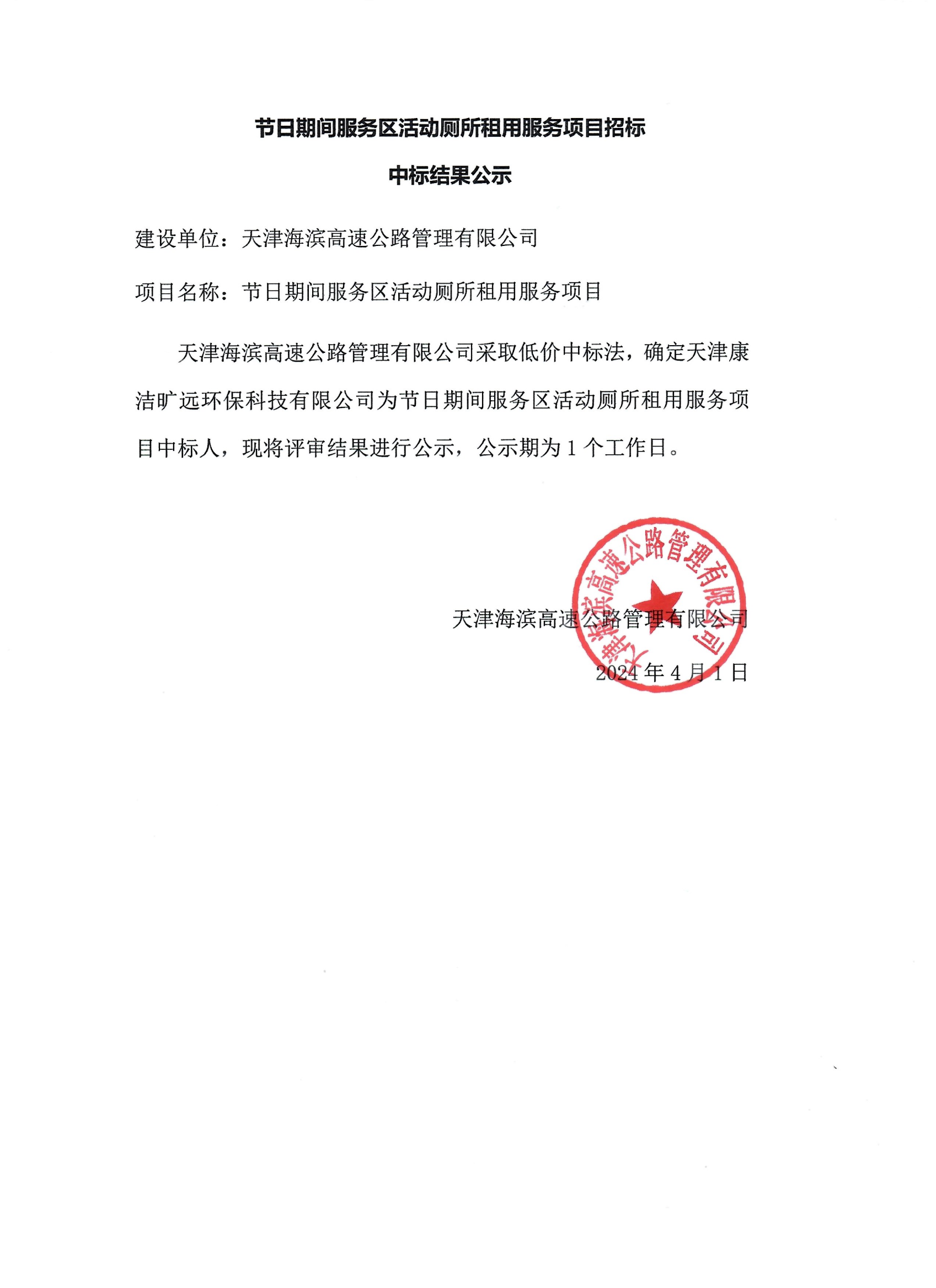 节日期间服务区活动厕所租用服务项目招标 中标结果公示